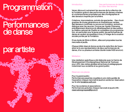 À l’occasion du lancement de la nouvelle saison culturelle Dans(e) la lumière, conception et coordination éditoriale d’un programme valorisant l’ensemble de la programmation : spectacles, performances, événements et exposition et médiation.